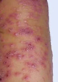 2、亚急性湿疹的症状: 急性湿疹炎症减轻后,仍有剧烈瘙痒,皮损以丘疹、结痂和鳞屑为主,可见少量丘疱疹,轻度糜烂。 >>提交症状病情,请在线医生解析<<